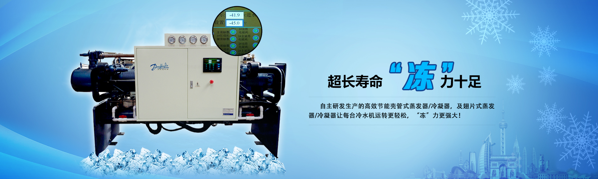 開(kāi)放式冷水機(jī)的蒸發(fā)器銅管采用內(nèi)外螺紋式增強(qiáng)管。銅管表面有螺紋,銅管外表面光滑、冷卻效果好,蒸發(fā)器筒身以25mm厚PE保溫板保溫,不結(jié)露,冷量損失少。